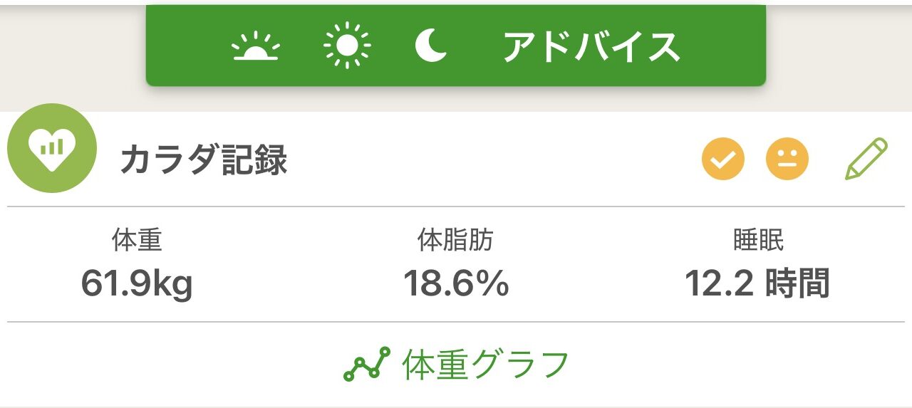 今回の記録は、体重61.9kg、体脂肪18.6%、睡眠12.2時間。 数字だけを見ると「回復日」に見えるが、結果は真逆だった。