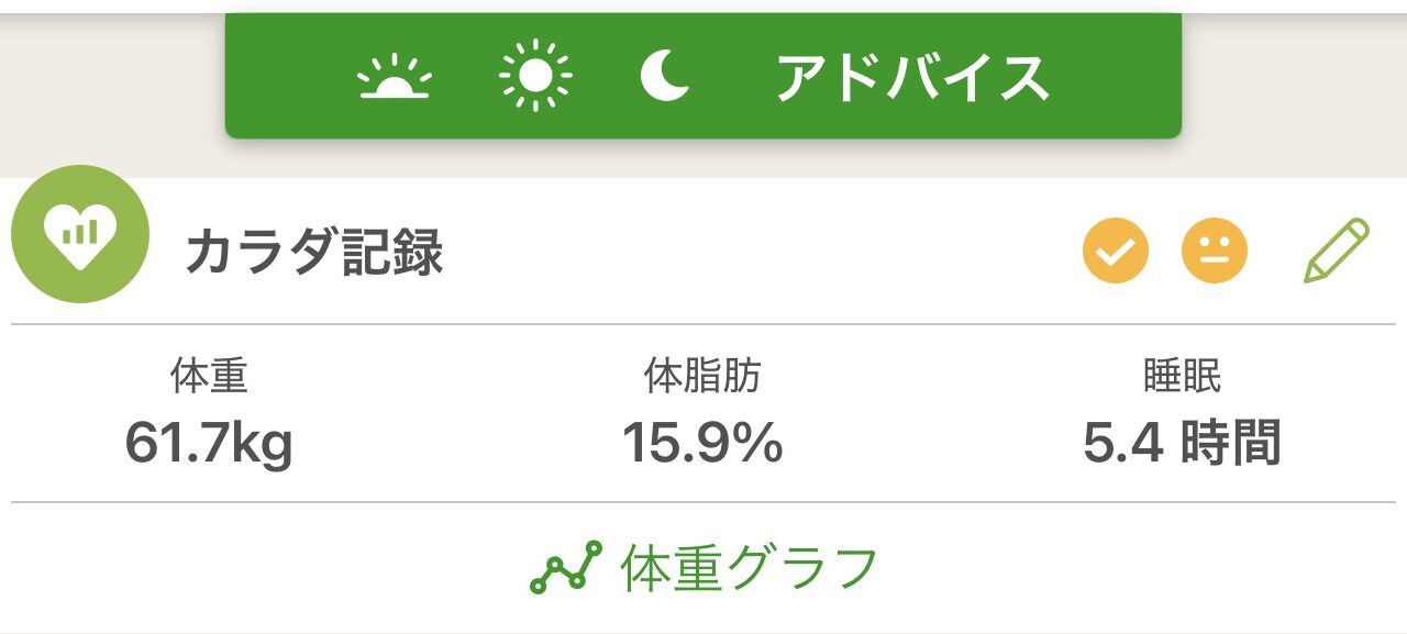 ■ 情報:本日の数値(体重・体脂肪・睡眠)