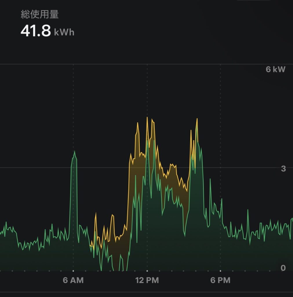 午前中から夜まで、比較的一定の電力消費が続きました。