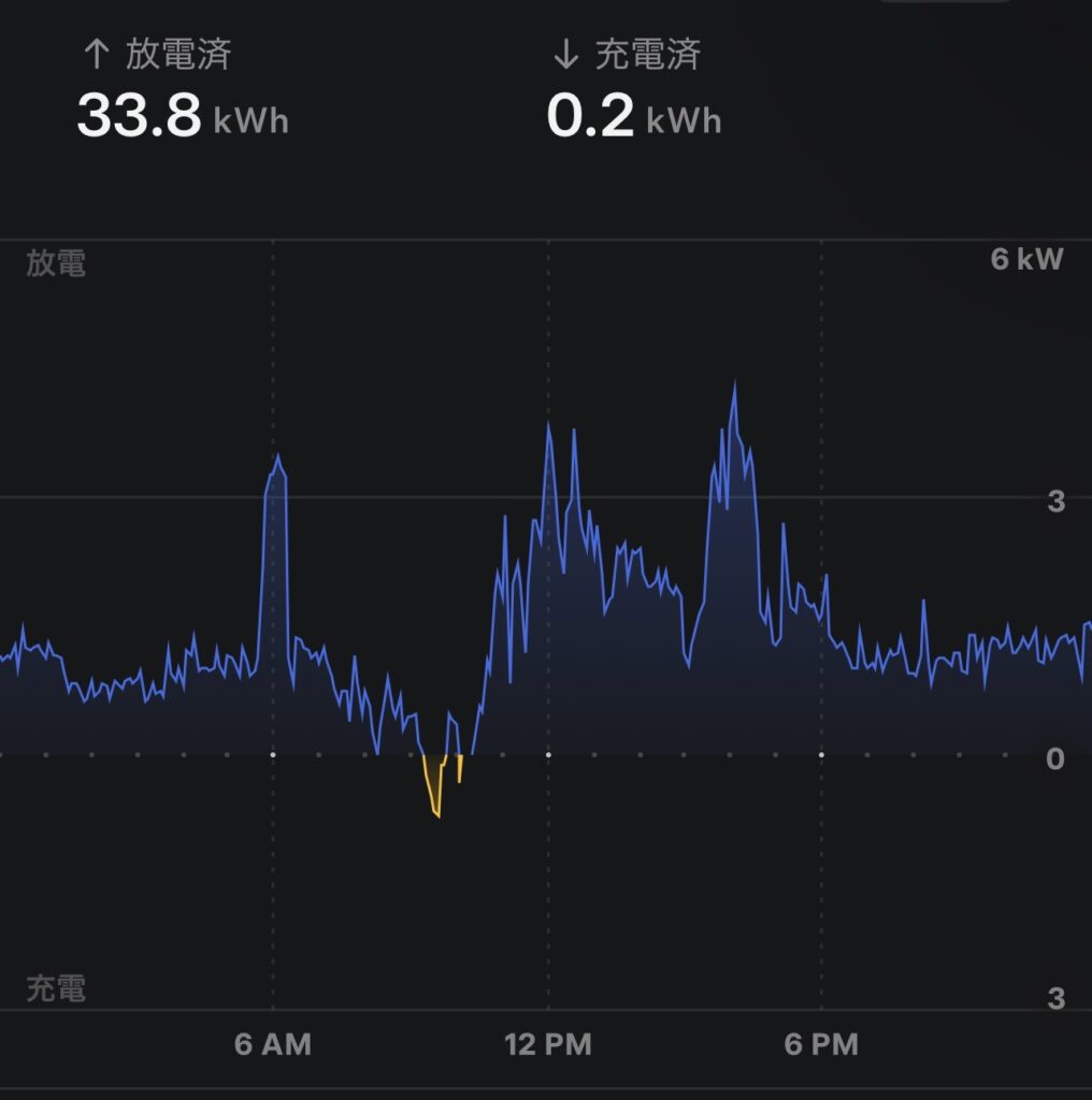 グラフを見ると放電が一日中続いており、0.2kWhのわずかな充電以外はずっとバッテリー運転。