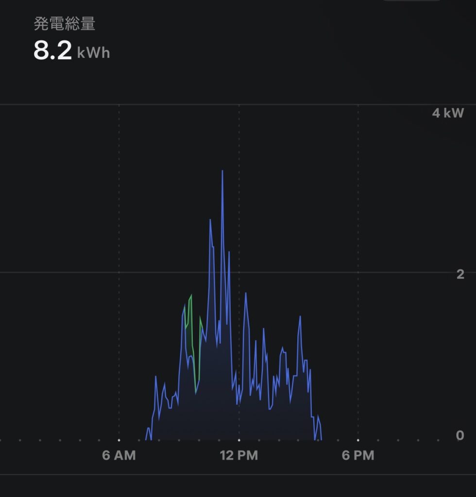 発電量は8.2kWhと控えめ。それでも蓄電池がしっかり働いてくれて、