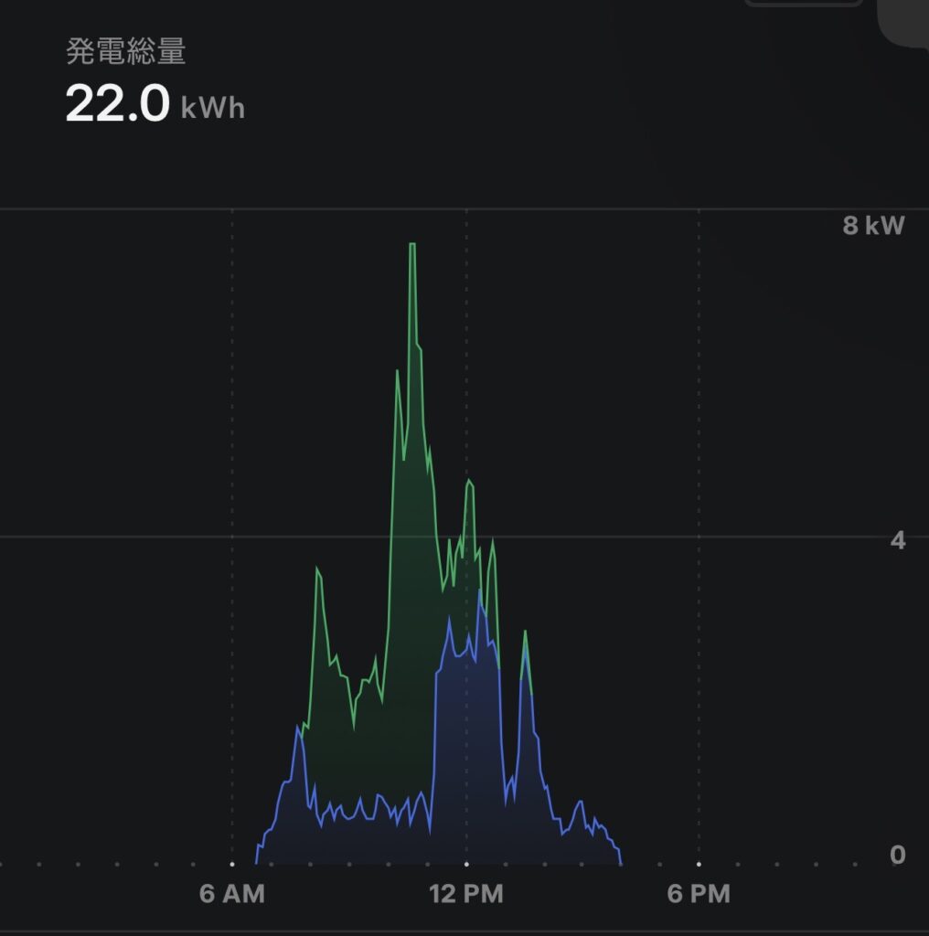 今日の22.0kWhの発電分だけでも、約 9.9kgのCO2削減 に相当。
