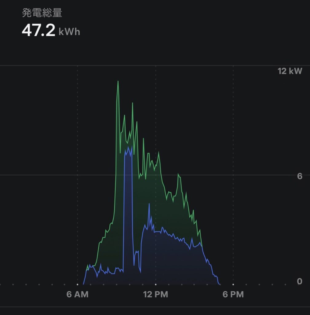 発電量47.2kWh、蓄電25.0kWhを記録し、買電ゼロを継続中です。