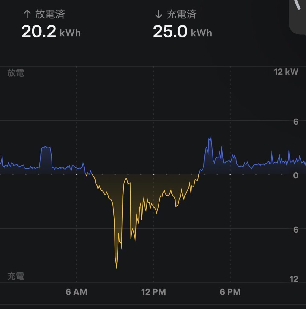 発電量47.2kWhのうち、25.0kWhを蓄電池に充電。