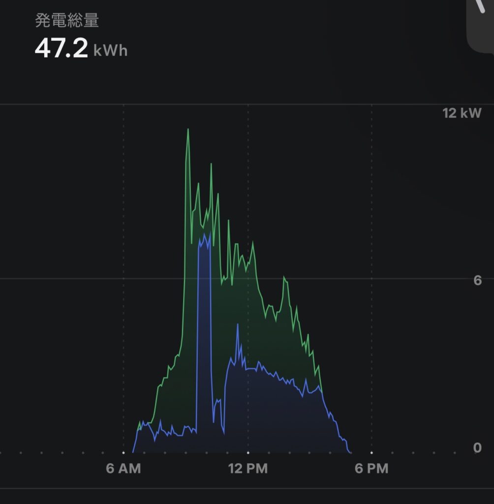 今日も青空が広がる晴天。発電量は47.2kWhを記録し、