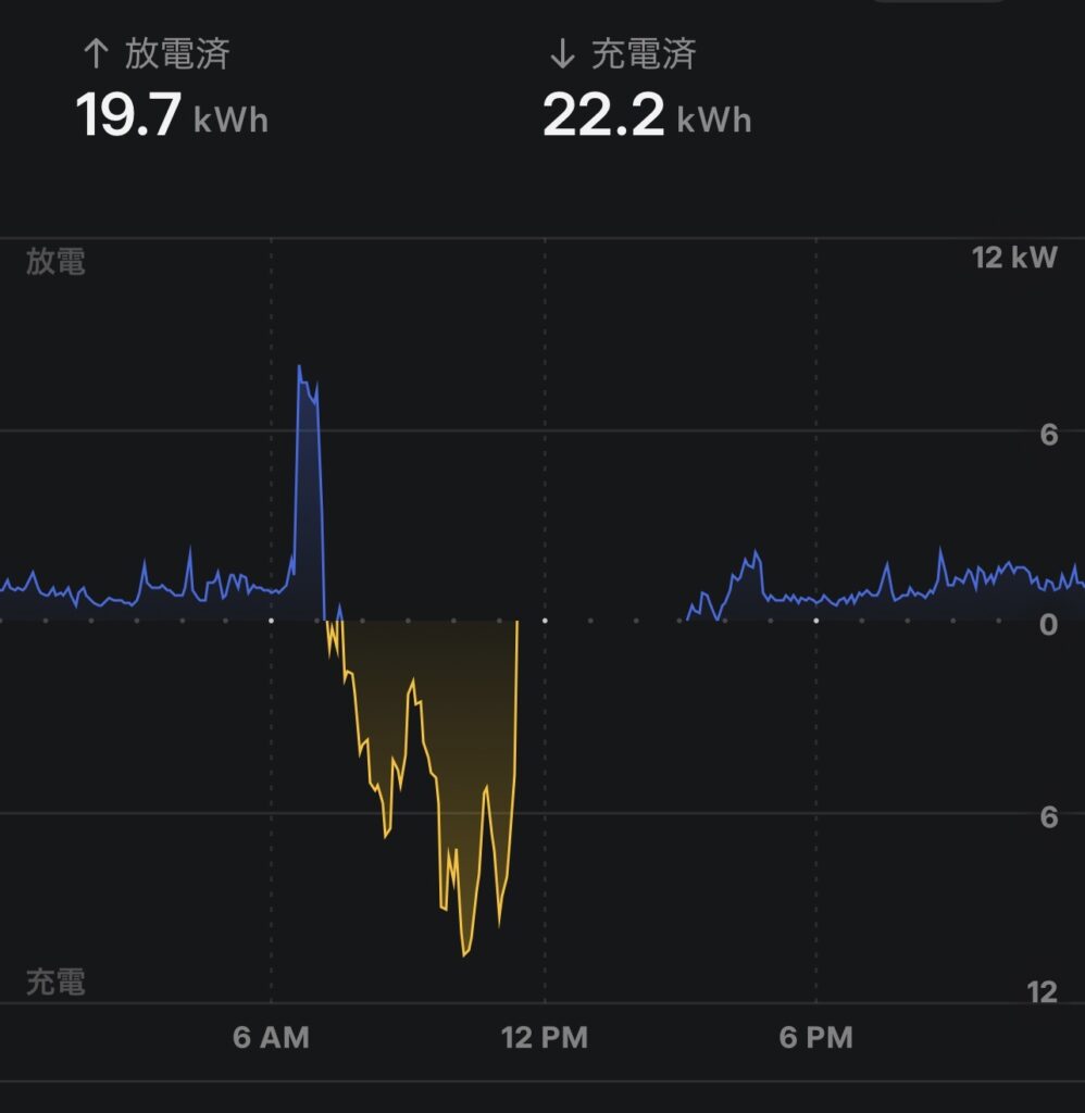 充放電グラフ(充電22.2kWh/放電19.7kWh)