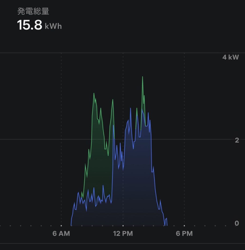 くもりの日でも15.8kWh発電できたのはなかなか優秀。