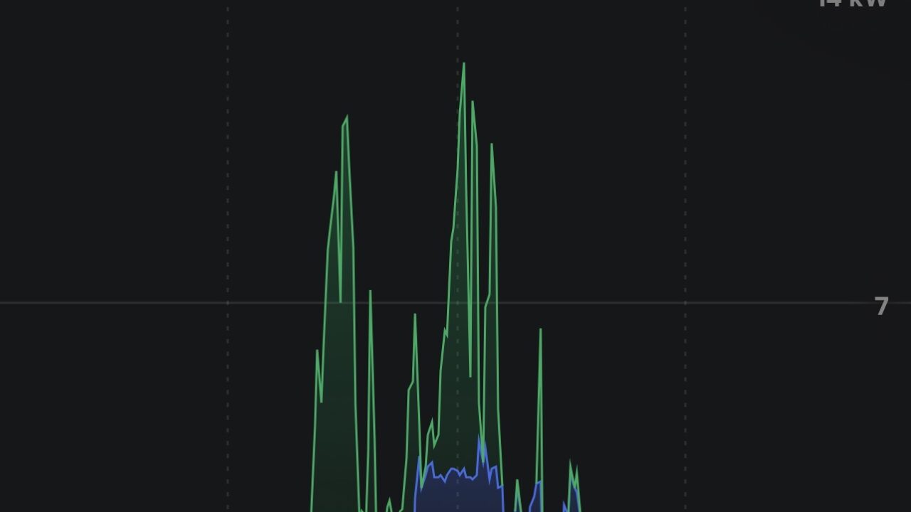 今日の前半は発電が安定していて、朝の立ち上がりも良好。昼前に一気に発電が伸びて、充電もしっかり入りました。夕方は発電が落ちついたものの、蓄電のおかげで買電ゼロをキープ。