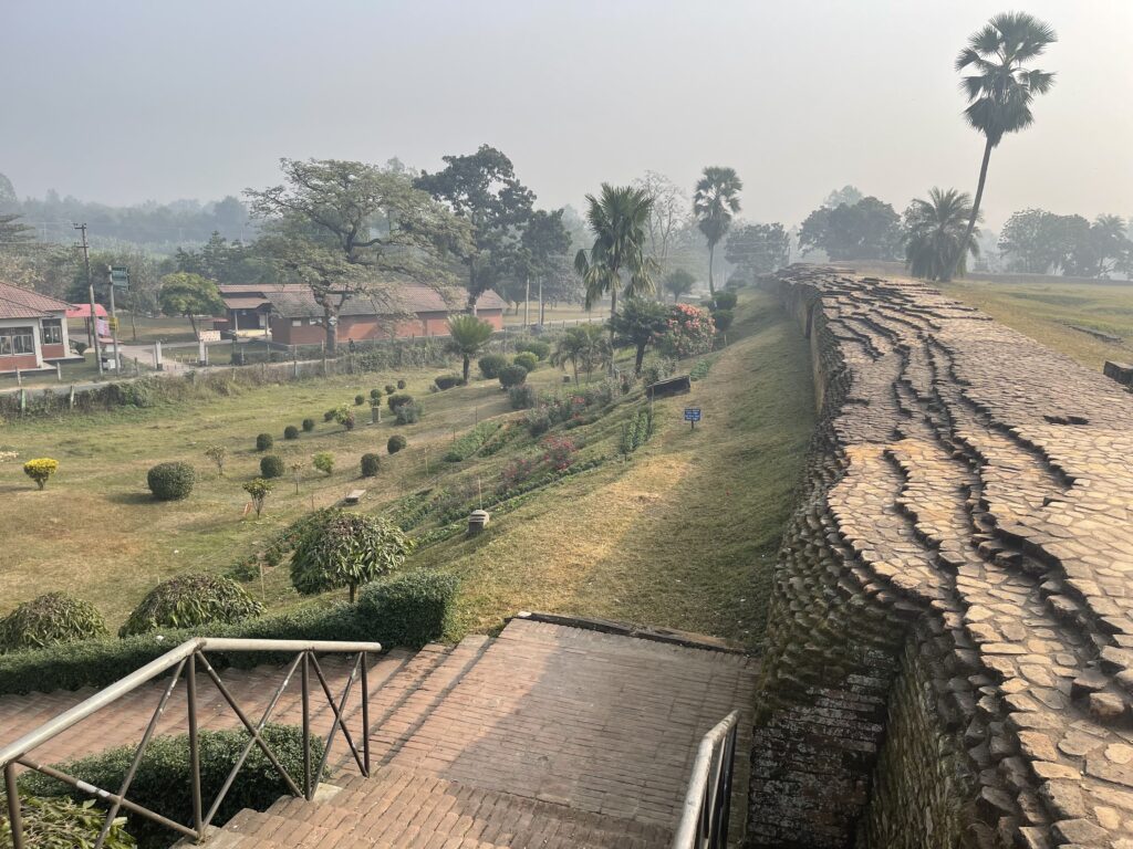 眼下に広がるのはきれいに整えられた庭と古代の城壁。