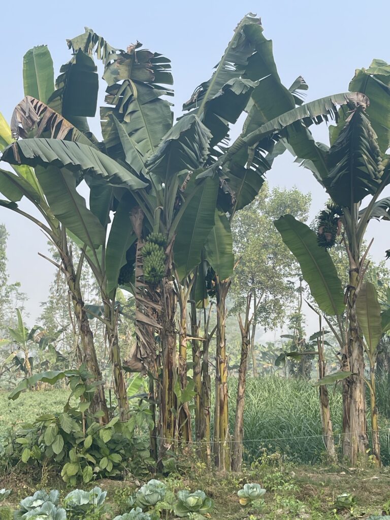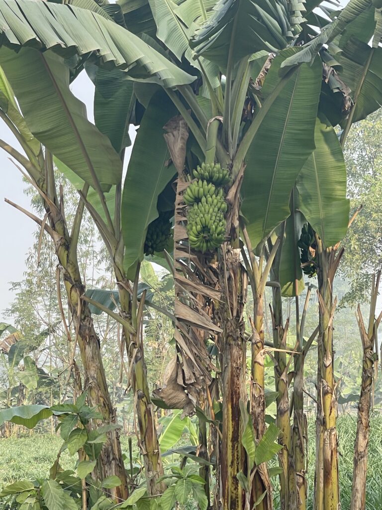 バナナの木々がまっすぐに伸び、実をたわわにつけている姿が印象的。