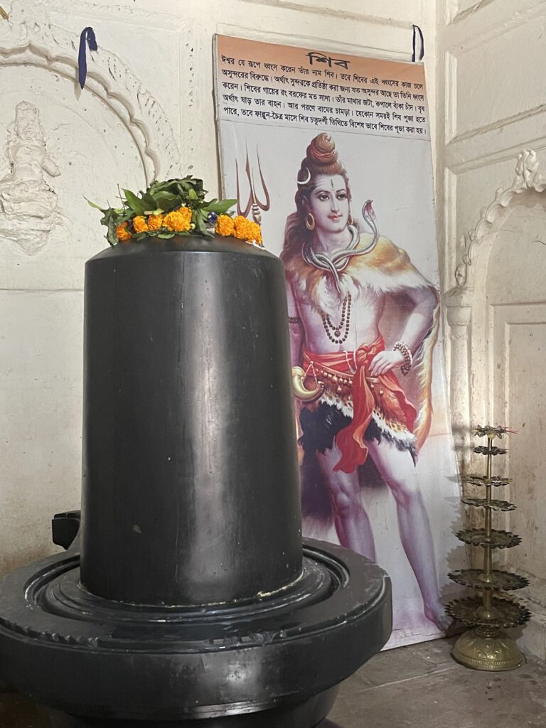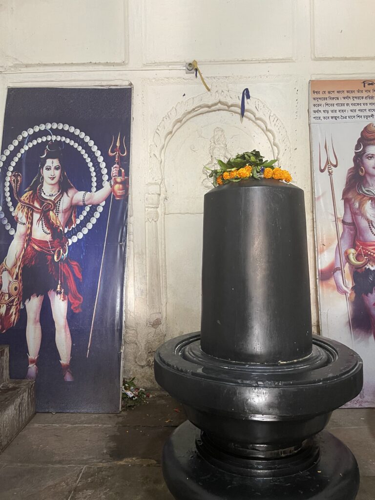 寺院の中央に鎮座する黒い石柱は「シヴァリンガ」。創造と破壊を司るシヴァ神を象徴する形で、花や葉が供えられていました。厳かな空気の中、訪れる人々は一人ずつ静かに手を合わせ、願いを込めて祈りを捧げます。