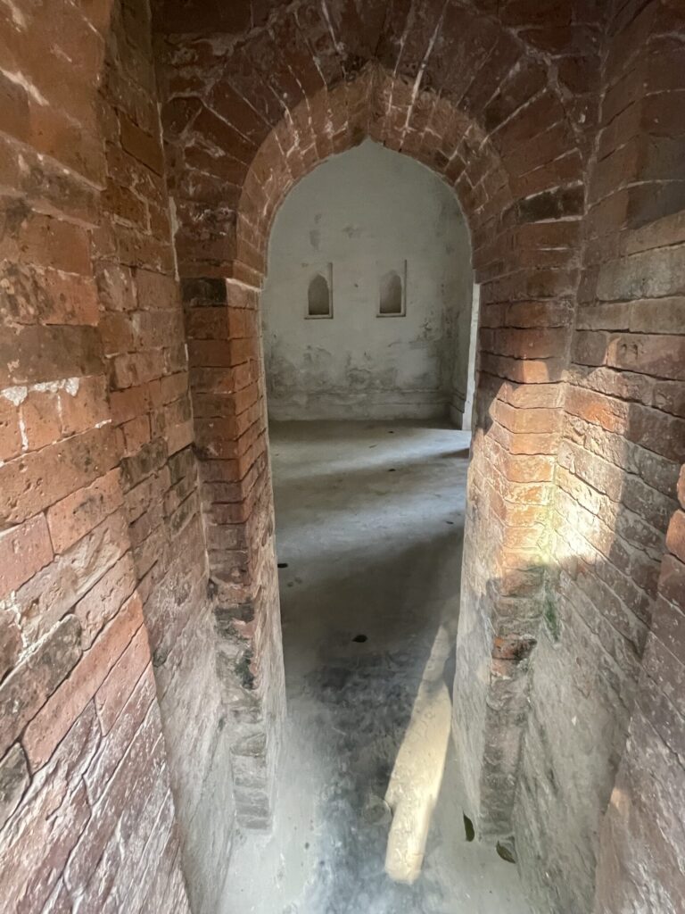 寺院の横には、今は使われていないレンガ造りの建物が残されていました。アーチ状の入り口をくぐると、ひんやりとした空気に包まれた小さな部屋がいくつも連なっています。壁には風化した装飾がかすかに残り、ここでもかつて人々が祈りや日常を営んでいた気配を感じました。