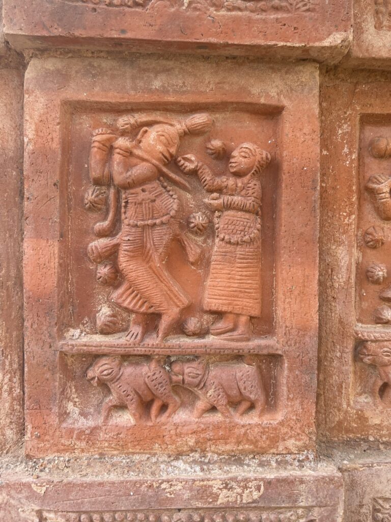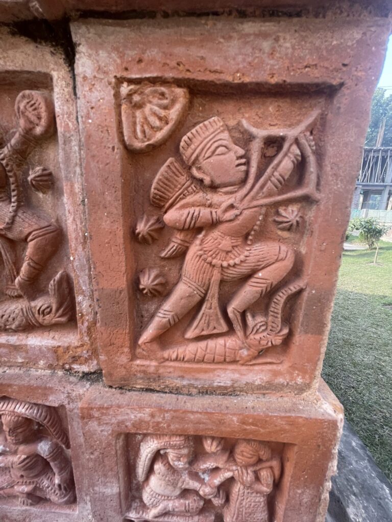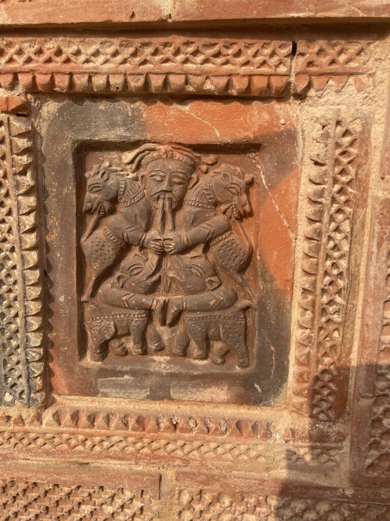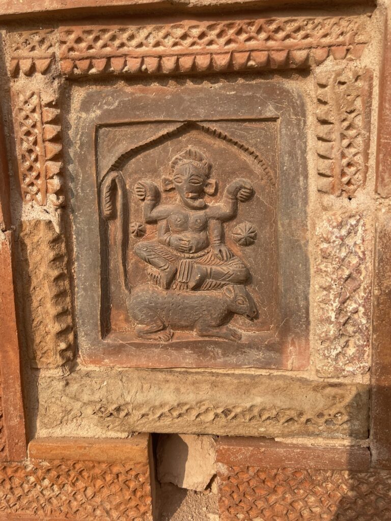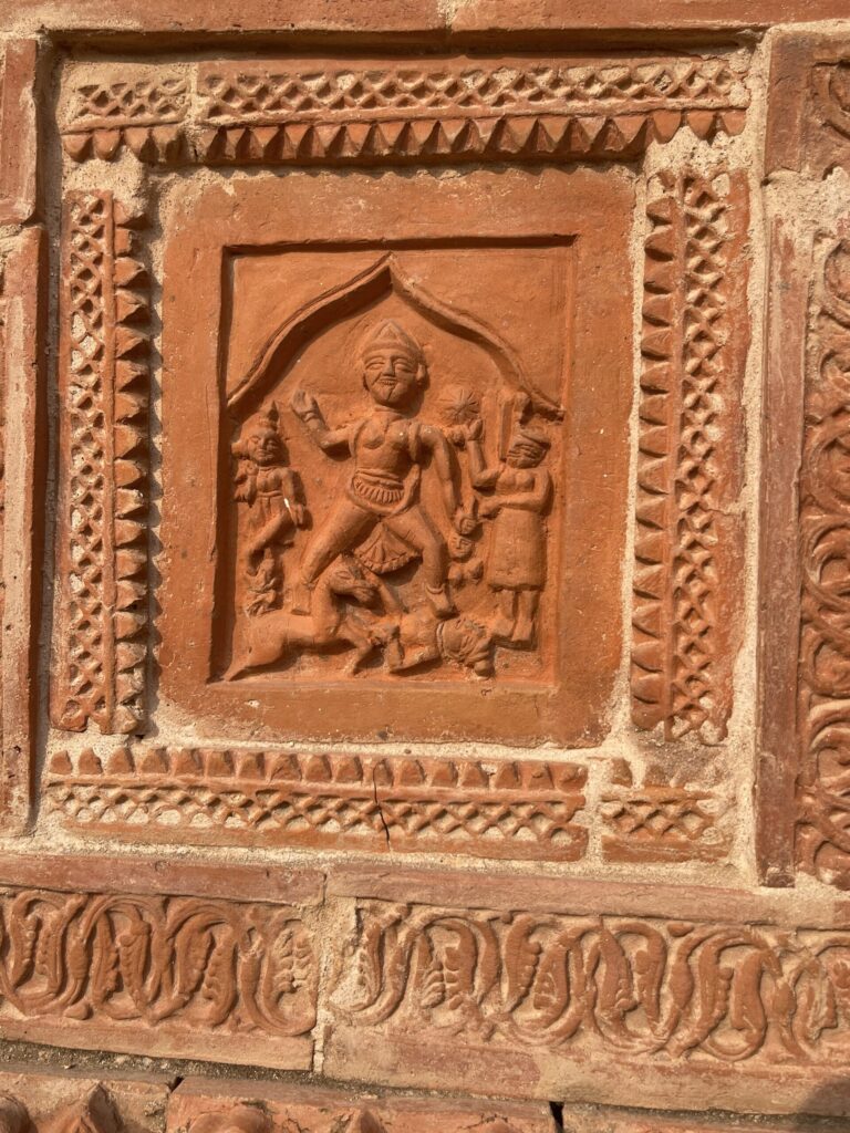 寺院の入口を囲むテラコッタ装飾は圧巻。無数の物語を閉じ込めたような彫刻は、時を超えて力強く残っていた。