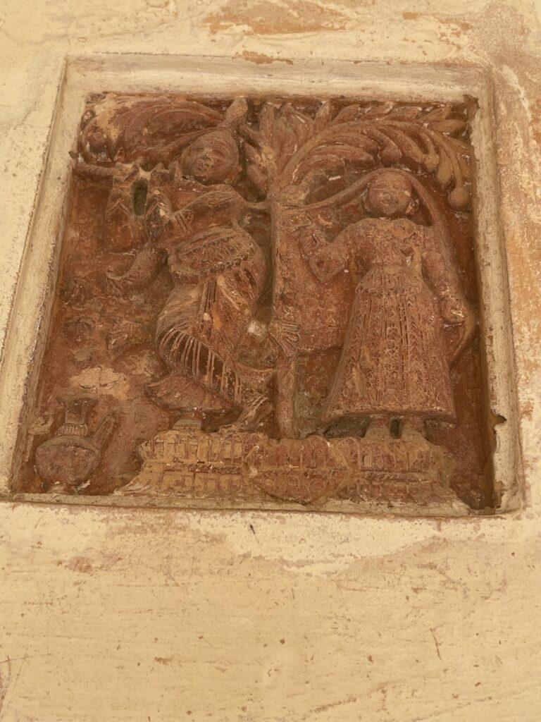 人物や動物が生き生きと彫られたテラコッタ装飾。
