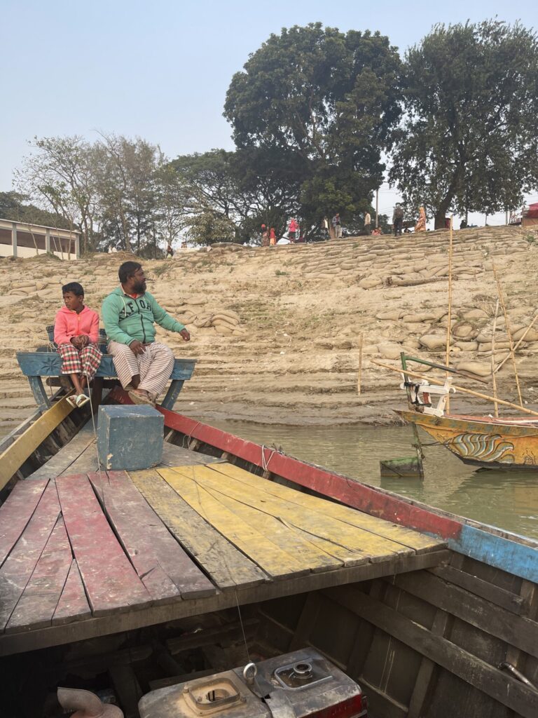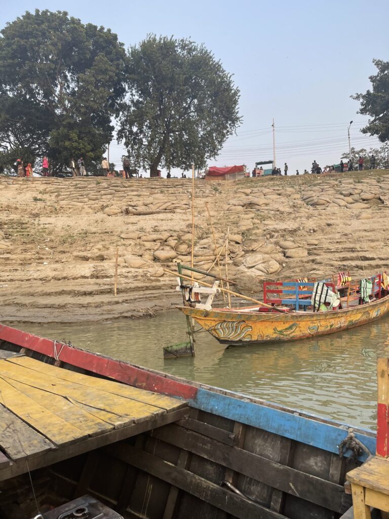 さらに川辺へ移動すると、素朴な木製ボートに乗る子どもたちや、静かに係留されたカラフルな船が並ぶ光景が広がります。