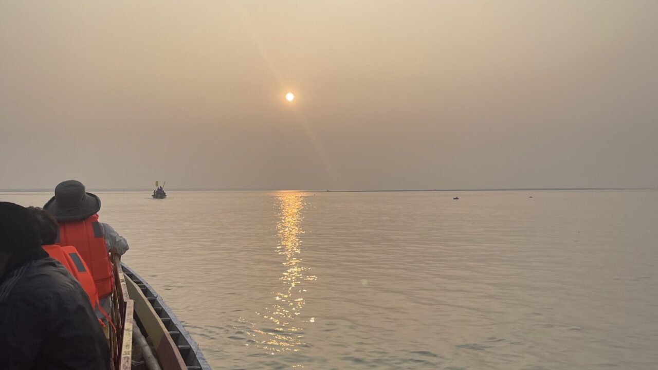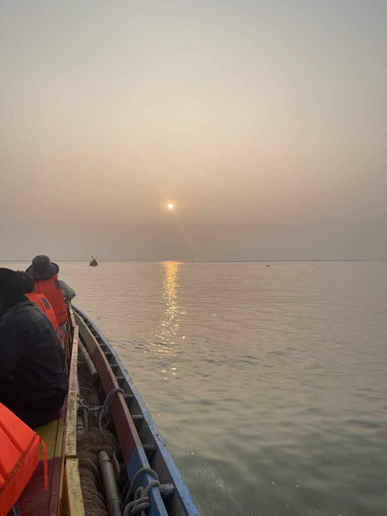 一日の締めくくりは、夕陽が水面にまっすぐ反射する中を進むボートからの眺め。言葉では表せないほど静かで美しい時間でした。