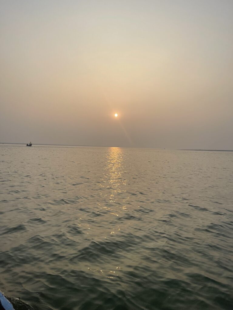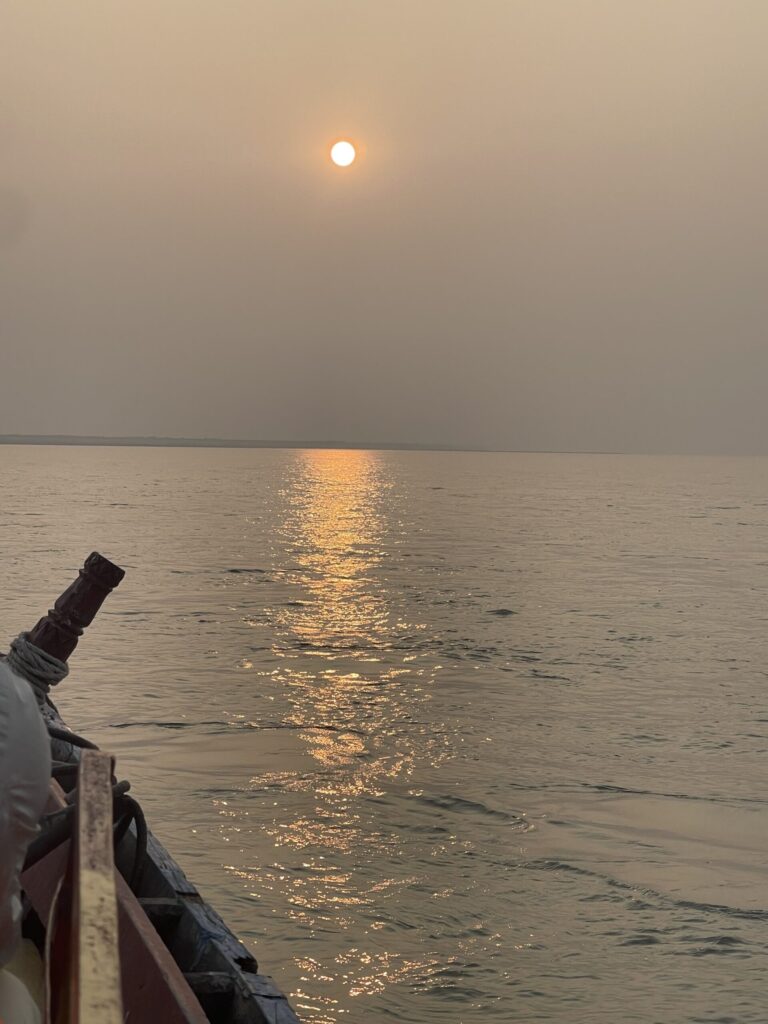 今日の旅は、広大な川をゆっくり進むボートから始まりました。静けさの中に太陽の光が広がり、景色全体が黄金色に染まっていく時間は、まるで時間が止まったようなひとときでした。
