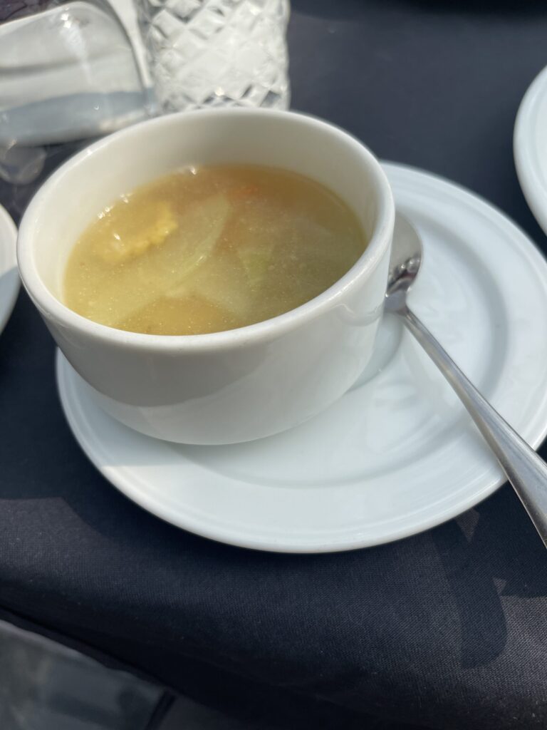 別の日には、別ホテルのテラスレストランでランチスープとスナックも体験しました。屋外でいただくスープは、とてもやさしい味わいです。