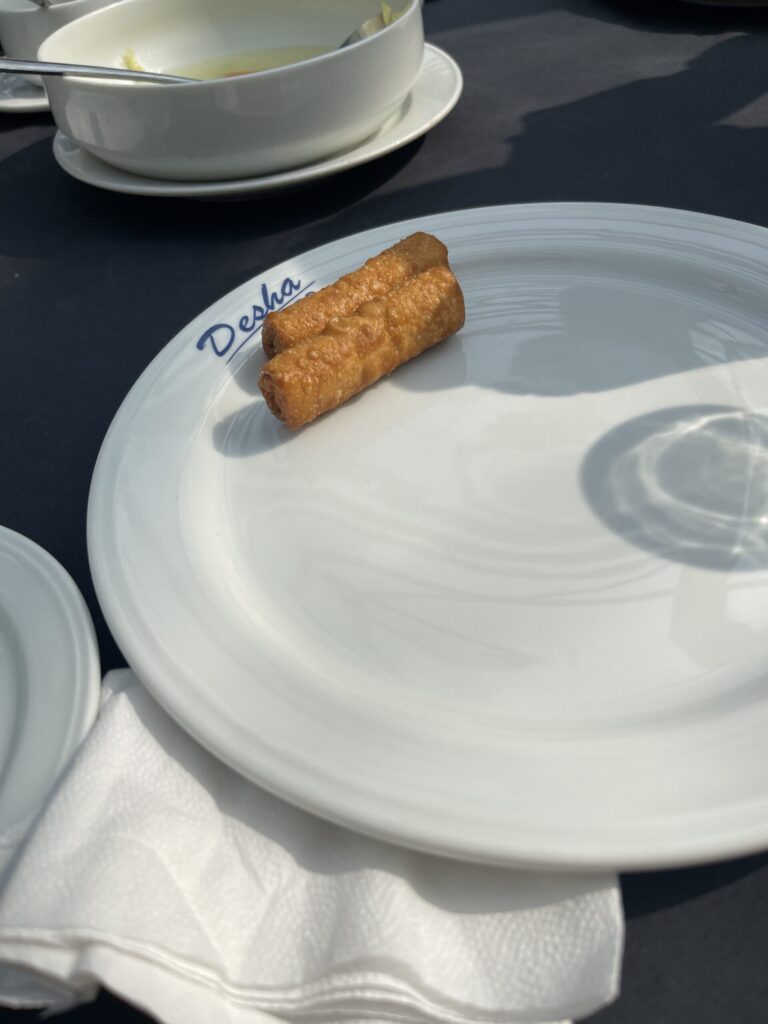 スープのあとは、ひと口サイズの揚げスナックが登場。軽い食感で、スナック感覚でつまめる一品です。