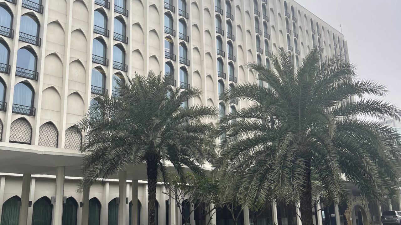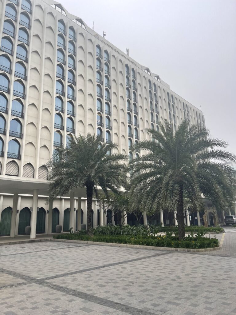 公園から一度ホテルへ戻ると、白い外観の建物とヤシの木が迎えてくれました。都会の真ん中にありながら、リゾートホテルのような雰囲気を感じさせる佇まいです。