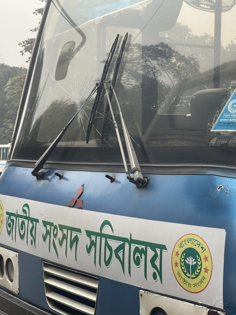 そのすぐ近くには、国会関係者用と思われるバスが停車中。フロントガラスにはひび割れが残り、働く車の日常を物語っています。きれいなだけではない、現場のリアルさを感じて、ここで働く人たちの毎日を想像してしまいました。