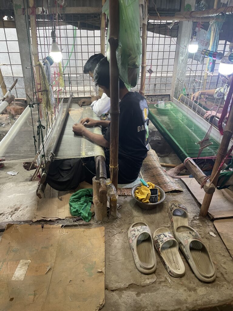 彼らはここで寝起きし、朝から晩まで糸を織り続ける。