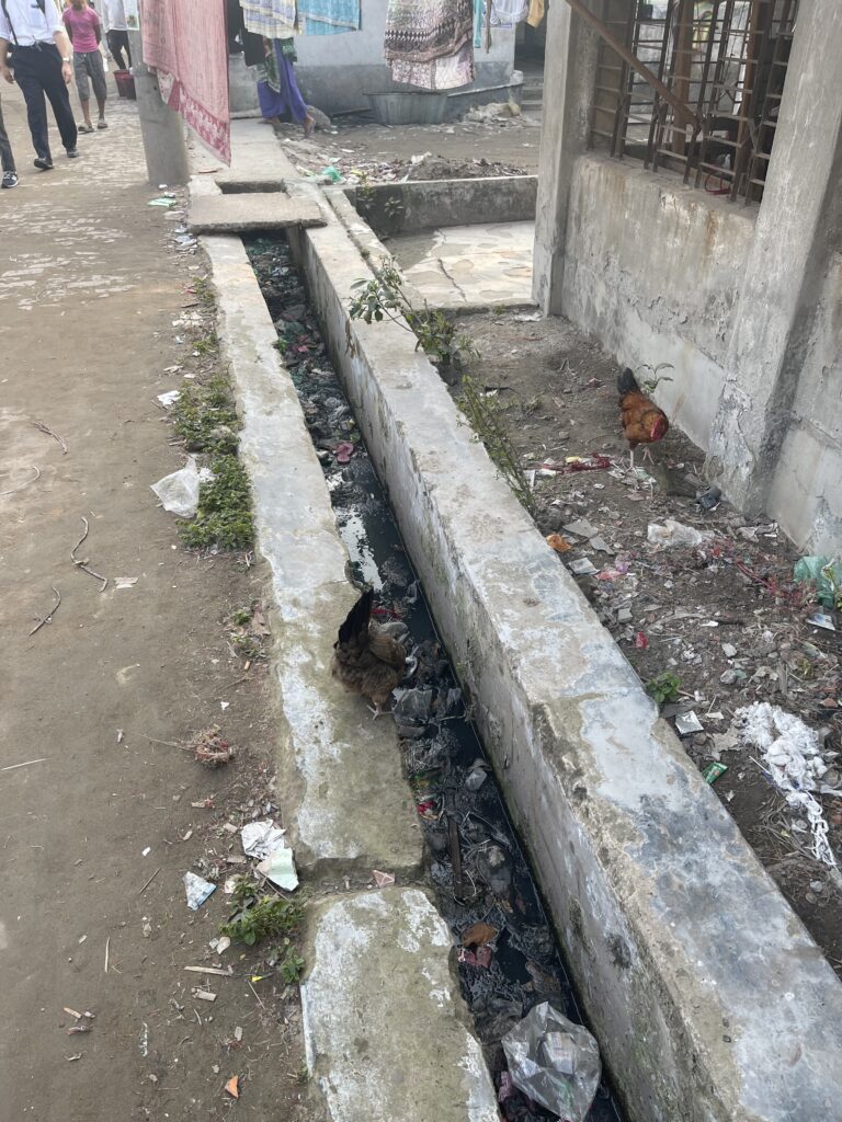 道端には瓦礫やゴミが散らばり、コンクリートの溝には水が流れる。