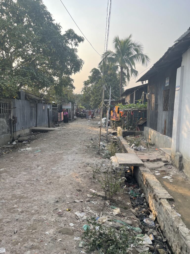 リキシャが通り抜け、洗濯物が風に揺れる――生活の息づかいを感じる瞬間です。