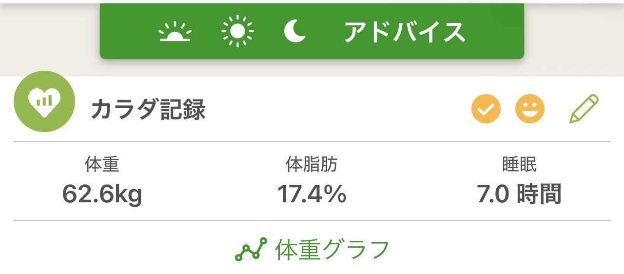 体重は前日比でほぼキープ。睡眠も適正で、コンディションは良好。