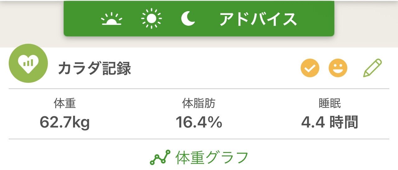 睡眠はかなり短め。しかし体脂肪率がここまで下がったのは、日々の積み重ねの結果。