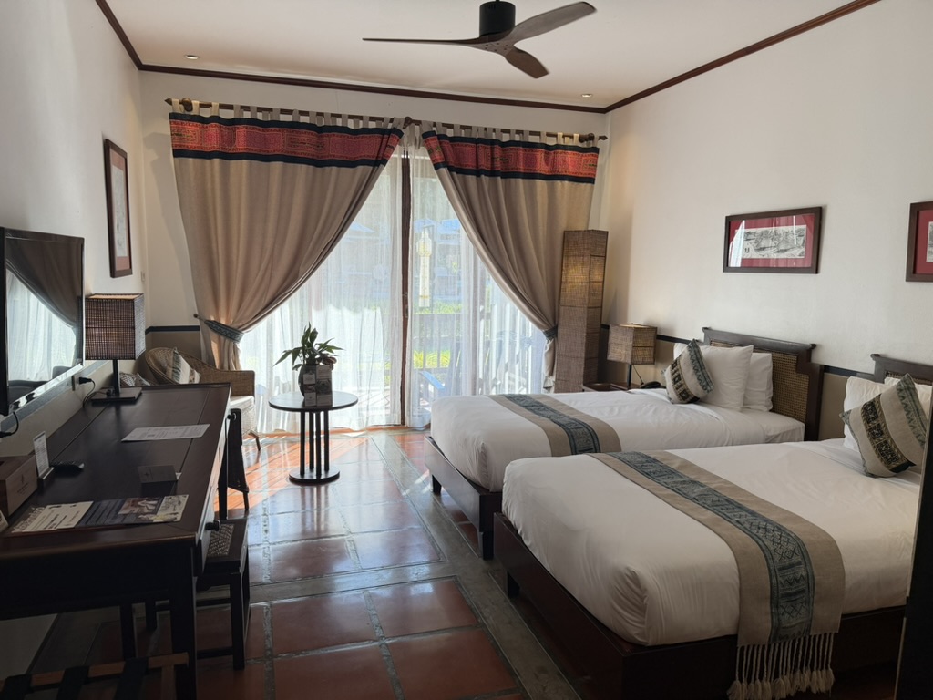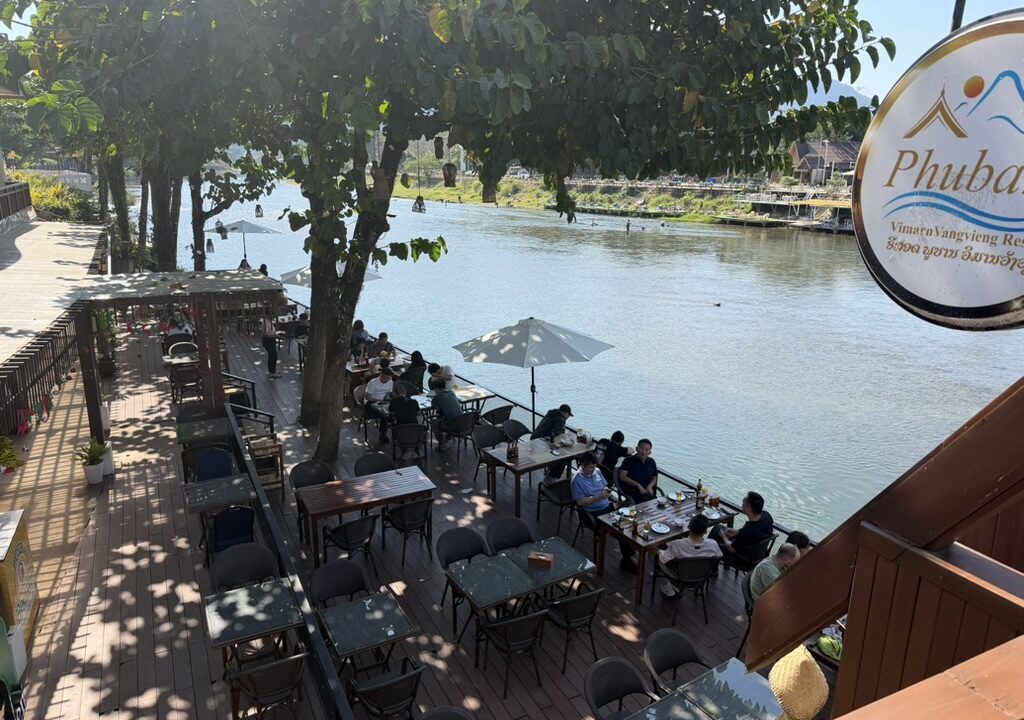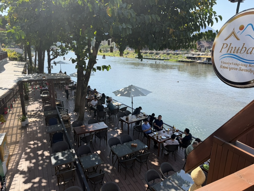 ヴァンヴィエンでお世話になったのが「Phuba Vinara Vangvieng Resort」。ナムソン川のすぐ横に建つリゾートホテルで、テラスから眺める川の景色がもう最高でした!カルスト山が川の両側にそびえ立ち、まるで絵葉書の中にいるみたいです。