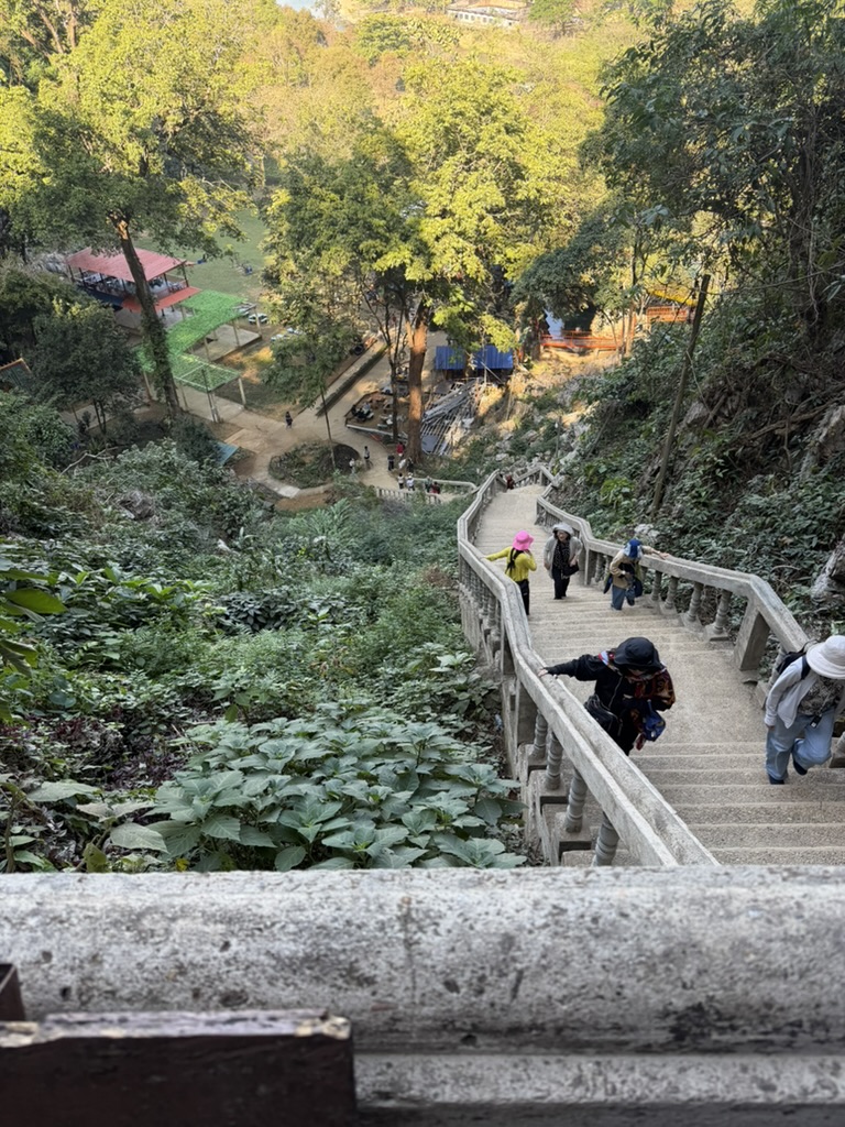 ヴァンヴィエンの一番の見どころといえば洞窟!急な石段を下りながら向かうその道のりからすでに冒険感があります。下を見ると足がすくみそうなくらいの高さ…でも、その先に待つ絶景のためにがんばって降りました!