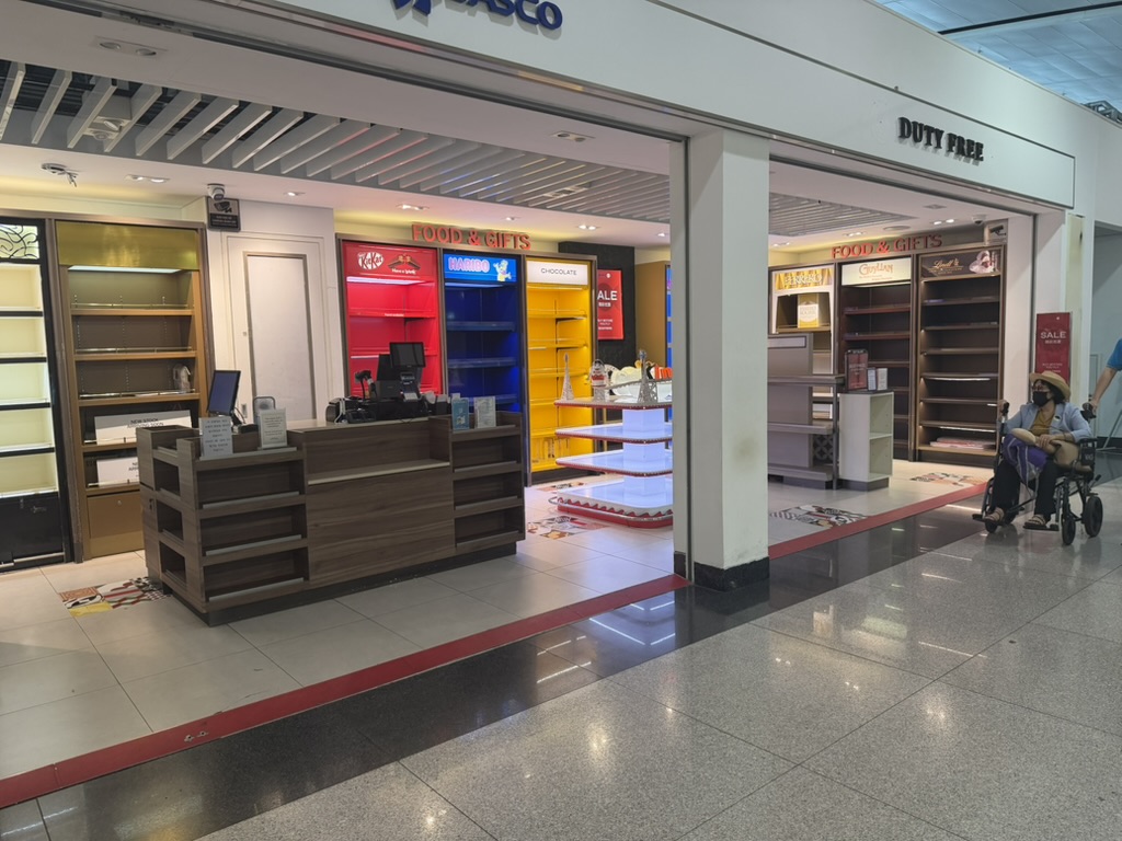 免税店エリアは想像以上に静かで、どこか落ち着いた雰囲気。派手さよりも実用性を感じる空間だった。