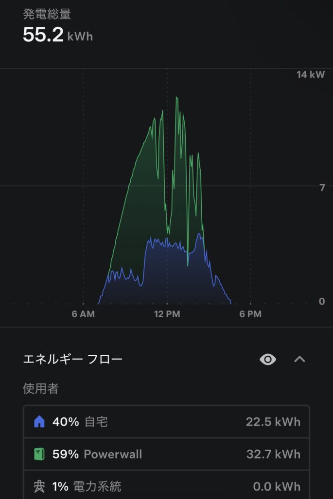 - 発電量は十分でPowerwallも高稼働