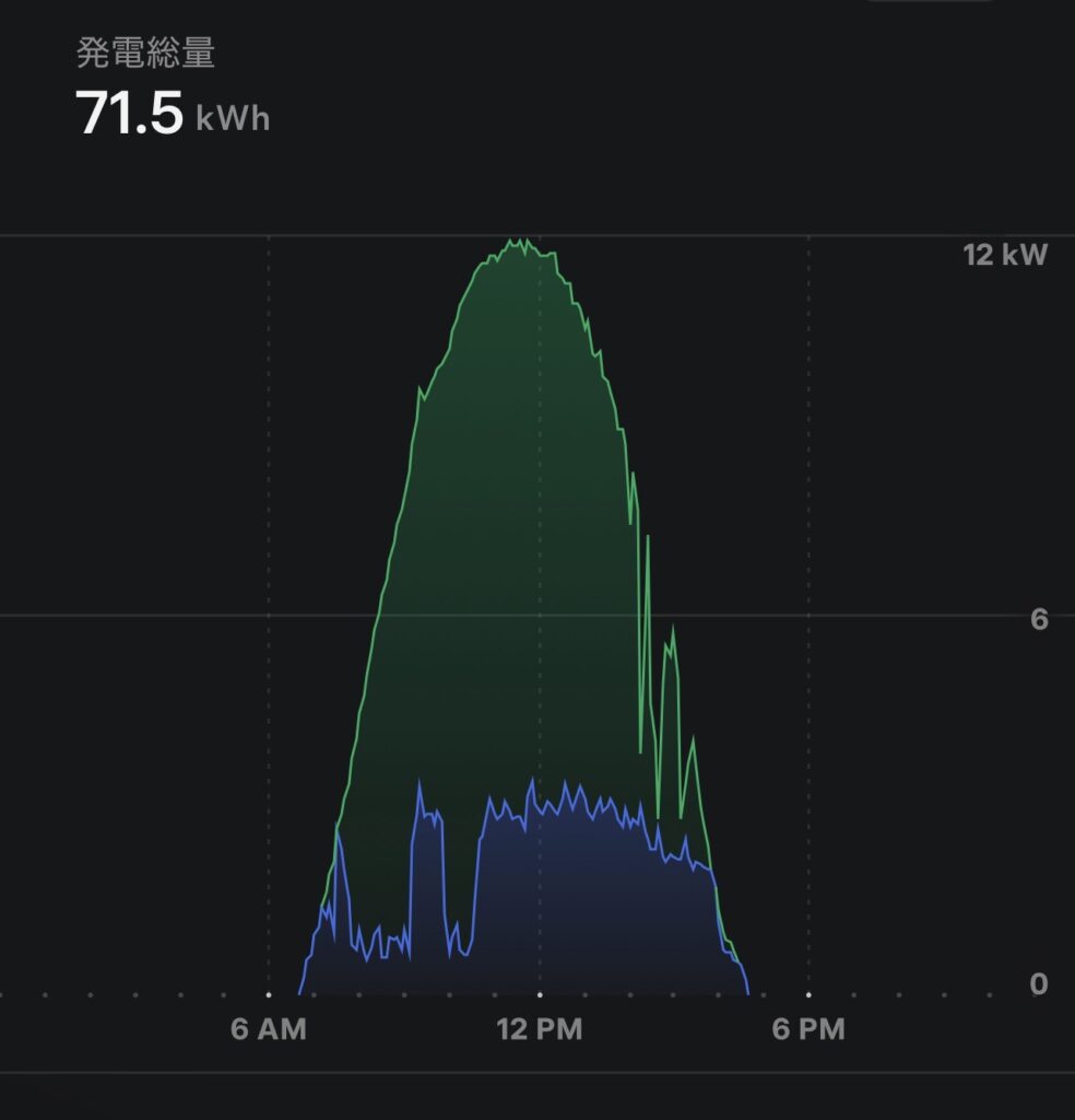 午前中は発電が少なめだったが、昼前から一気に上昇。