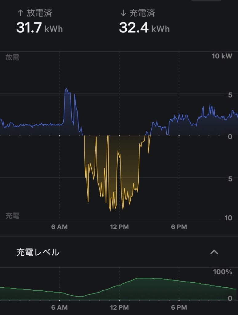 - Powerwall充電:32.4kWh / 放電:31.7kWh