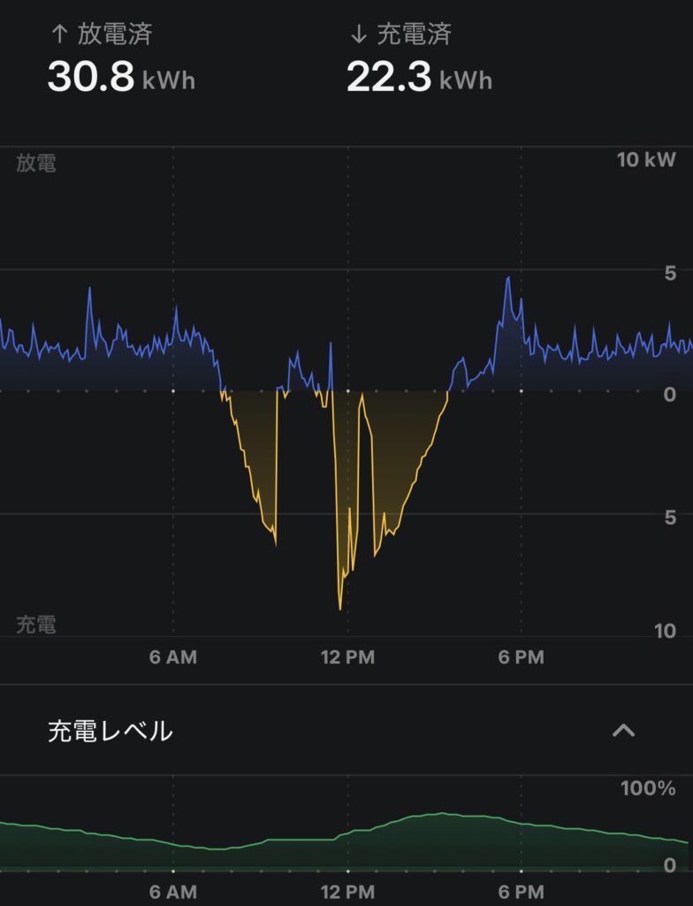 - Powerwall充電:22.3kWh / 放電:30.8kWh