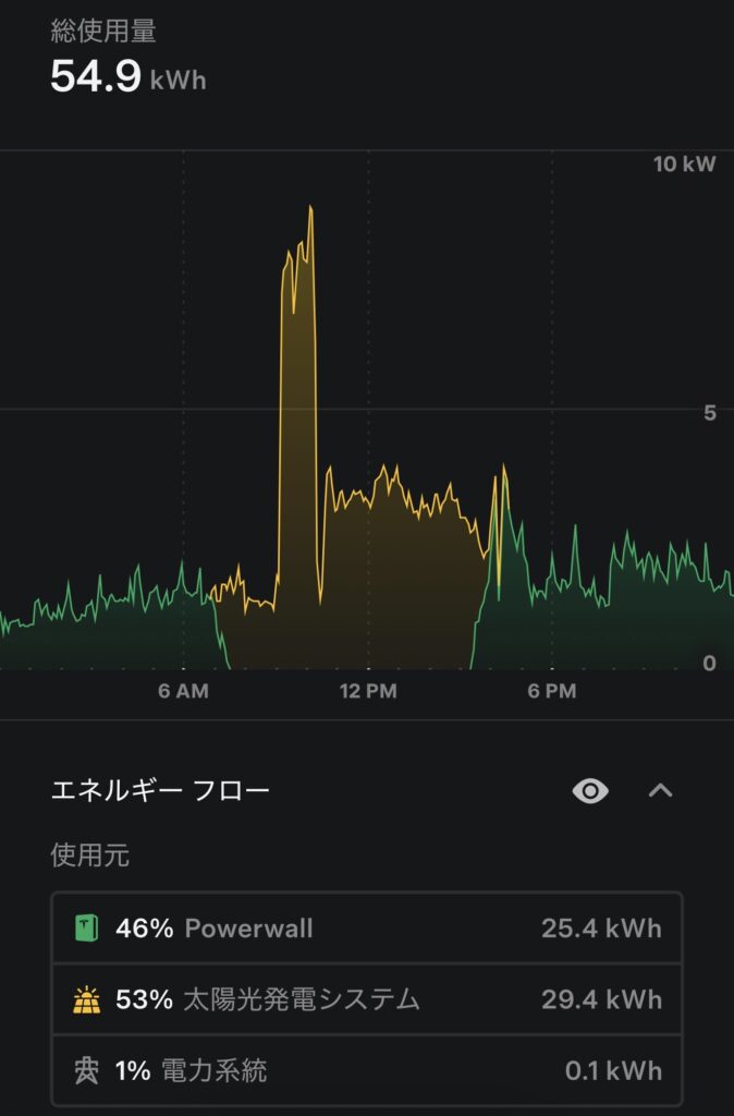 それでもカナディアンソーラー12kWとTesla Powerwall 54kWhがしっかり働き、