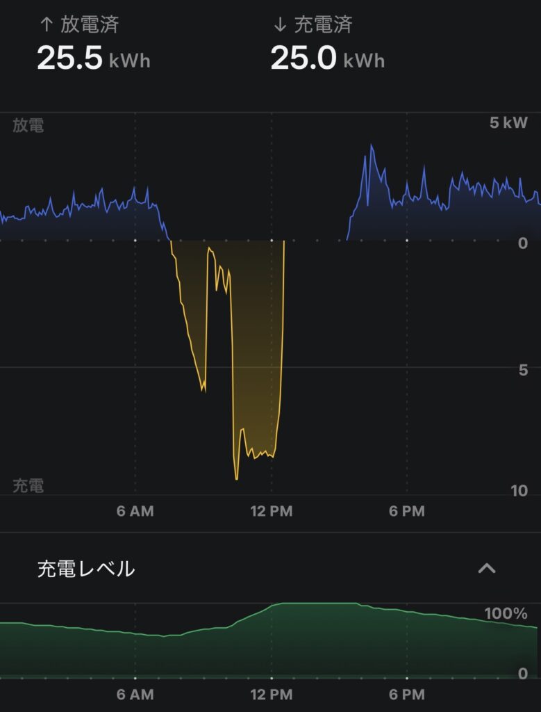 Powerwallからの放電と自然に連携する安定稼働が続きました。