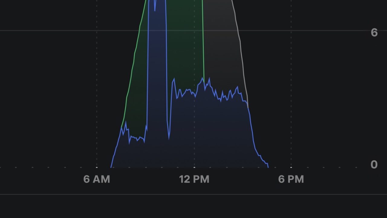 正午前に一気に発電ピークを迎え、6時間以上にわたり高出力を維持。